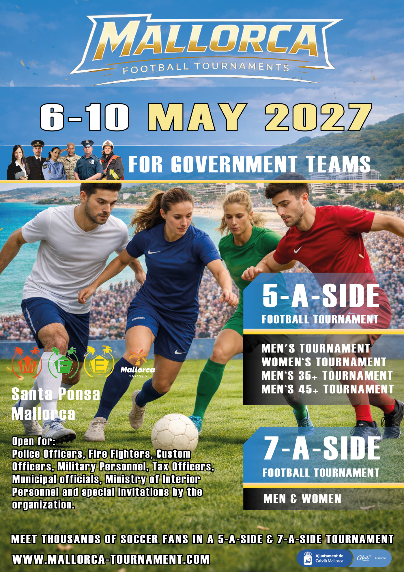 - Mallorca Football Tournament open to the Police, Fire Brigade and Military personnel, Customs, Municipalities, Ministries and other serving authorities.