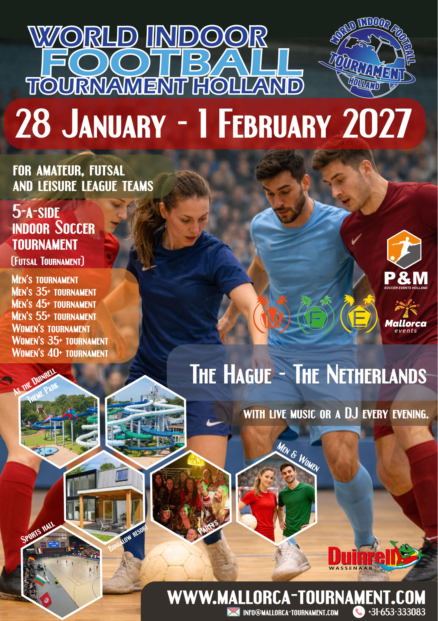 Mallorca Football Events is an established and experienced Dutch company who successfully organise large-scale football tournaments in the Netherlands, Ibiza and Mallorca.For over 40 years, they have professionally arranged International tournaments - participating teams include Government teams, amateur teams and walking football teams.