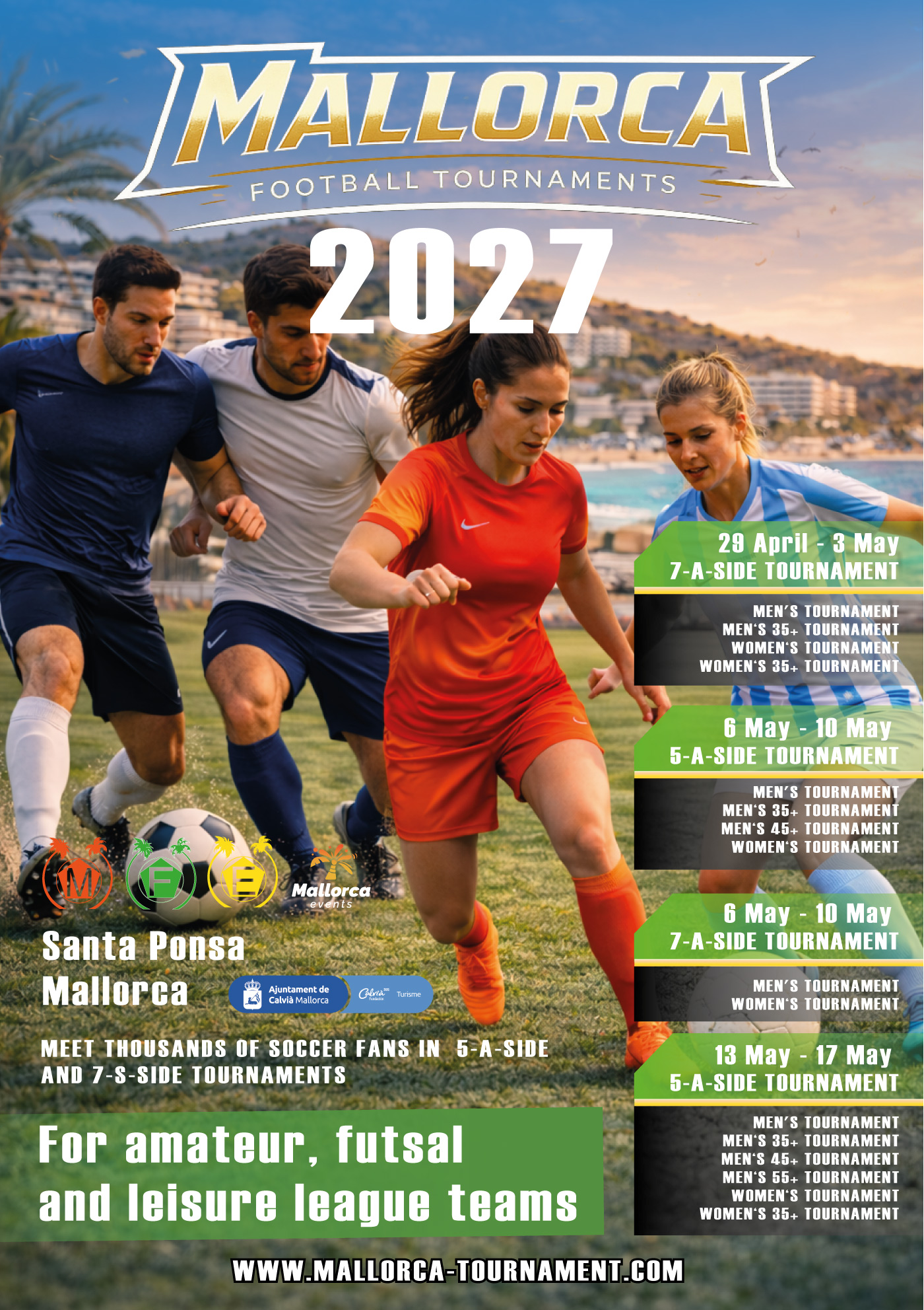 The Mallorca Football Tournaments are held annually in Mallorca. Teams from all around the world participate in these tournaments. There are three versions of these tournaments: