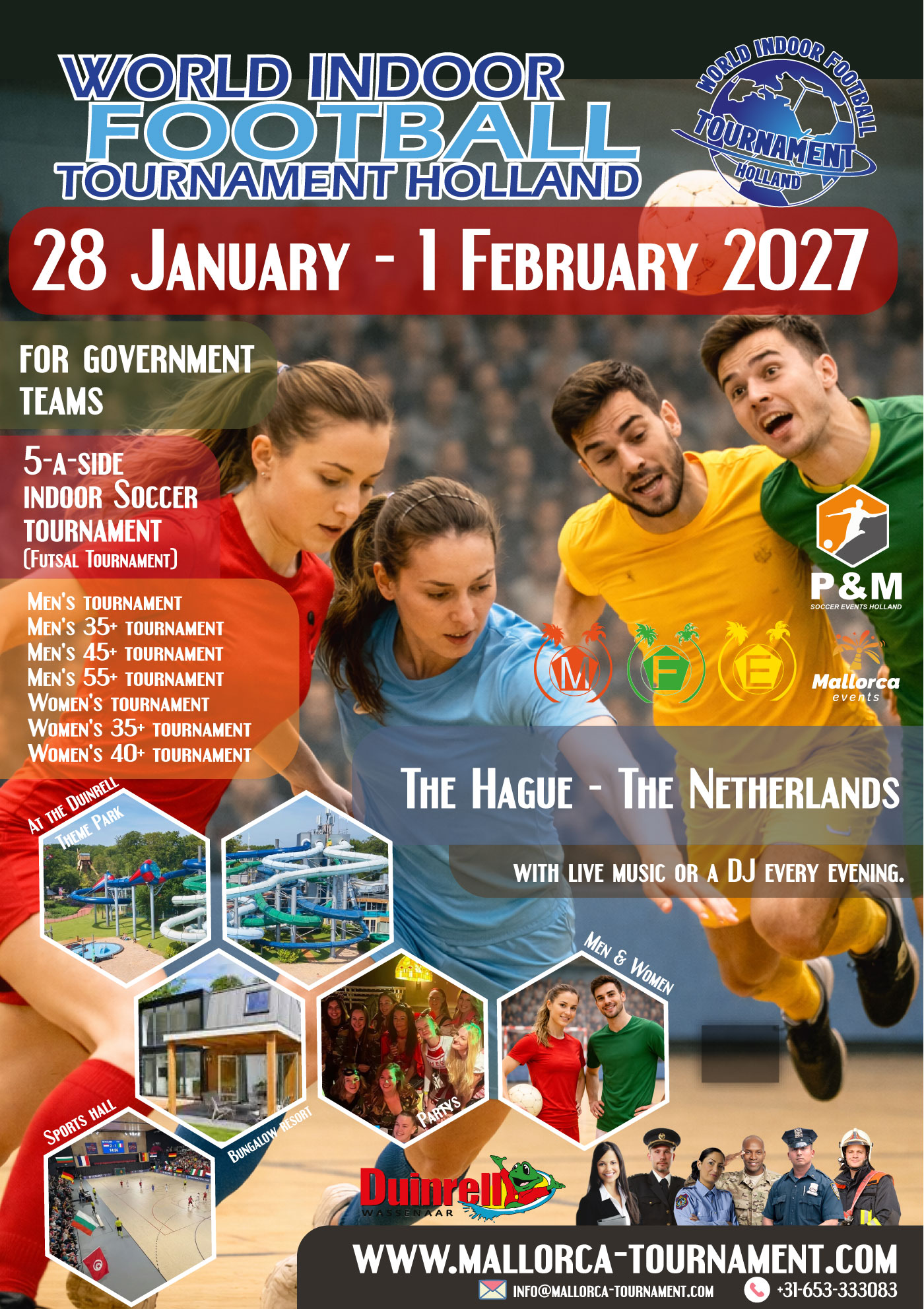 Mallorca Football Events is an established and experienced Dutch company who successfully organise large-scale football tournaments in the Netherlands, Ibiza and Mallorca.For over 40 years, they have professionally arranged International tournaments - participating teams include Government teams, amateur teams and walking football teams.